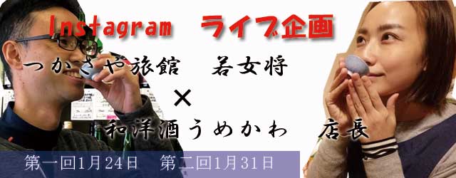 インスタライブではお酒好きのうめかわの店主と湯田川温泉つかさや旅館の若女将で日本酒についてや合わせる料理の提案など飲みながら気軽に見ていただける内容になっております。