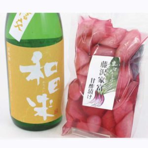 お酒に合うおつまみとして庄内の在来野菜の藤沢カブの甘酢漬けもセットでお求めいただけます。